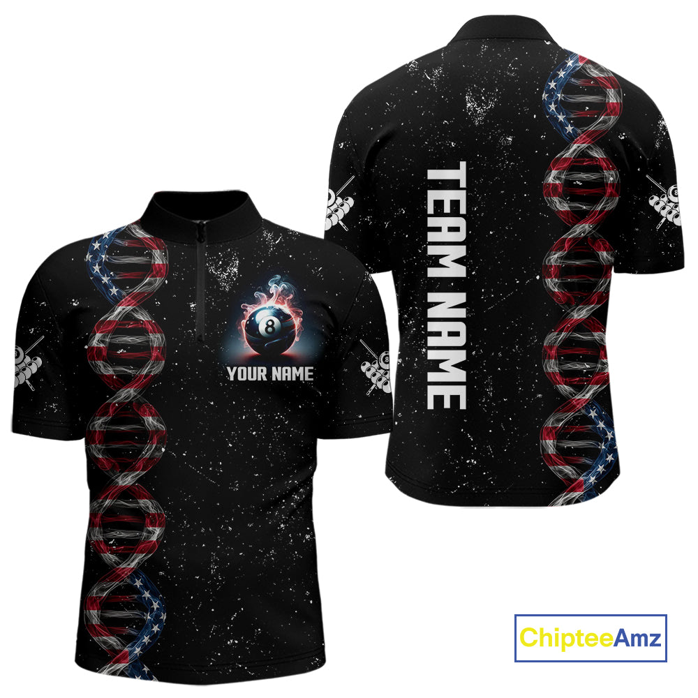 Men's Custom DNA American Flag Smoke 8 Ball Billiard Shirt, Patriotic Pool Jersey Polo & 1/4 Zip TDM4627