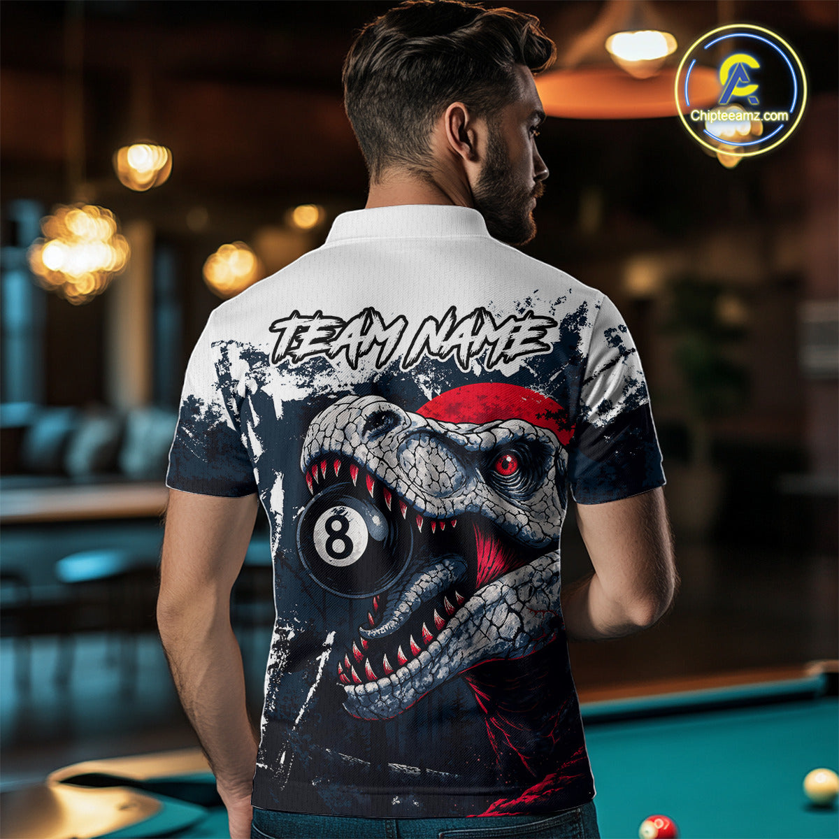 Personalized Dinosaur 8 Ball Billiard Shirt For Men Custom Billiard Team Shirts, Pool Jersey |Red TDM4766