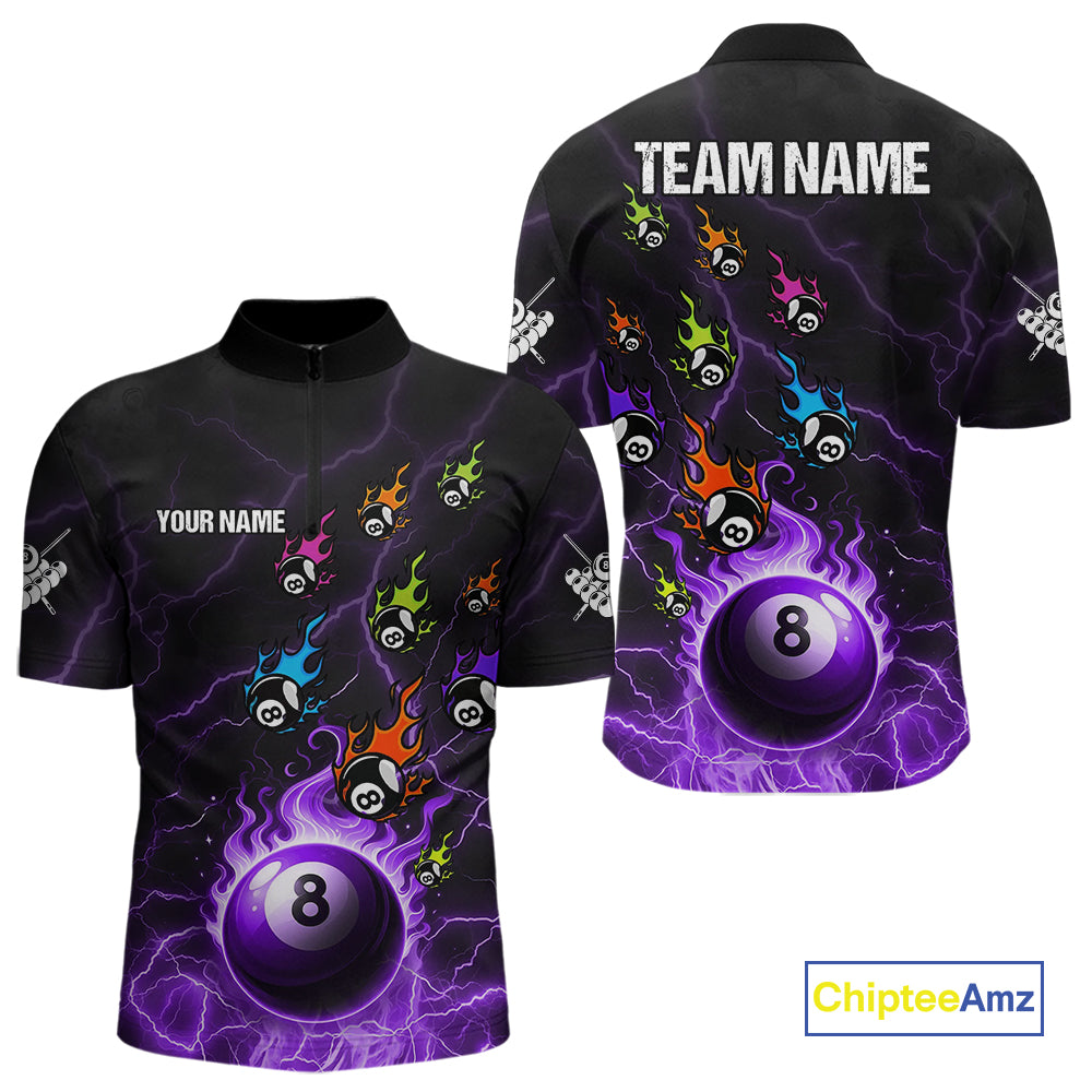 Personalized Funny Colorful Flame 8 Ball Billiard Shirt For Men Custom Pool Team Jersey |Purple TDM4968