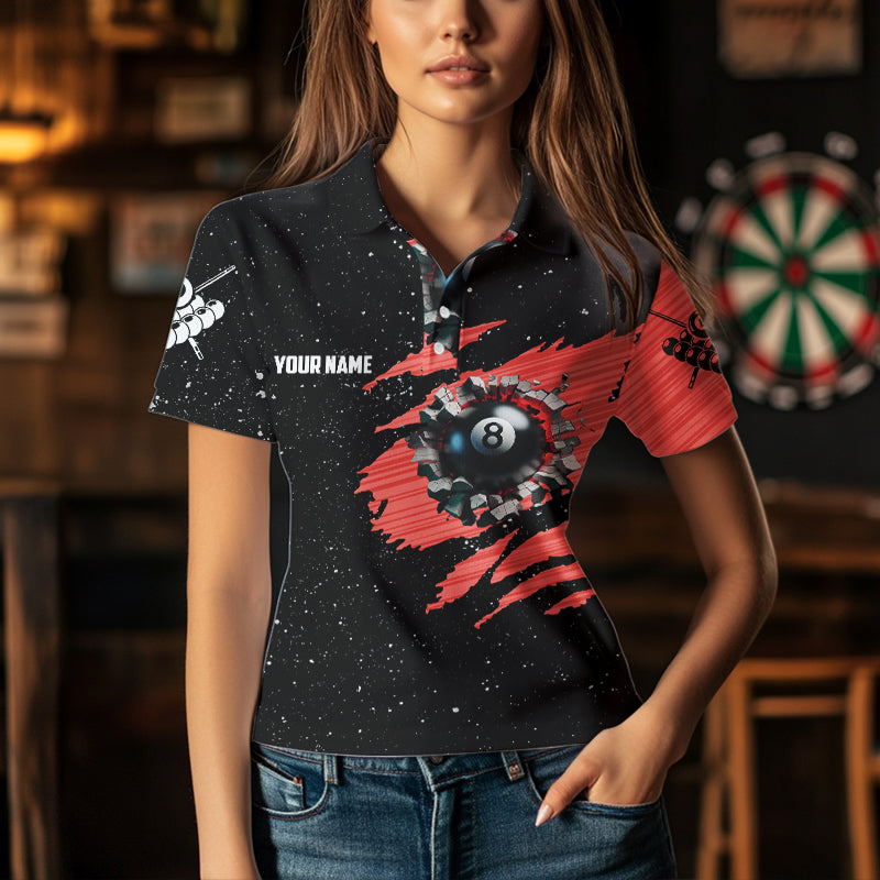 Customized Grunge American Flag 8 Ball Pool Women Billiard Polo Shirts, Pool Player Shirts |Red TDM1114