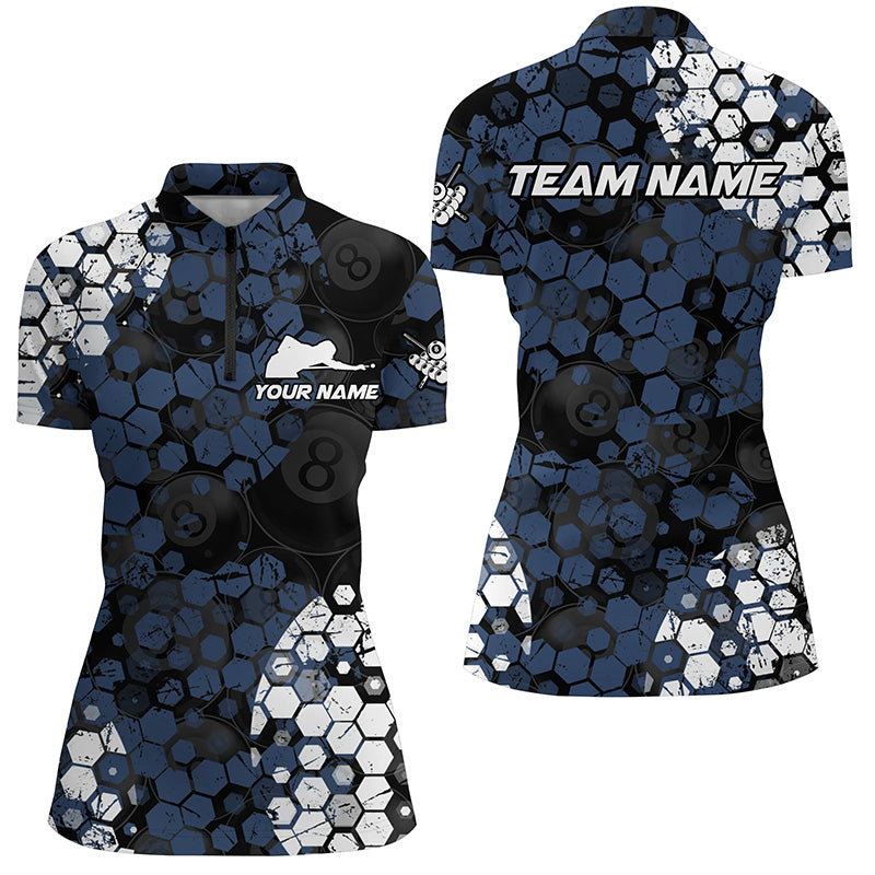 Personalized Blue And White Hive Billiard Shirts For Women Custom Grunge Retro Billiard Jerseys TDM1592