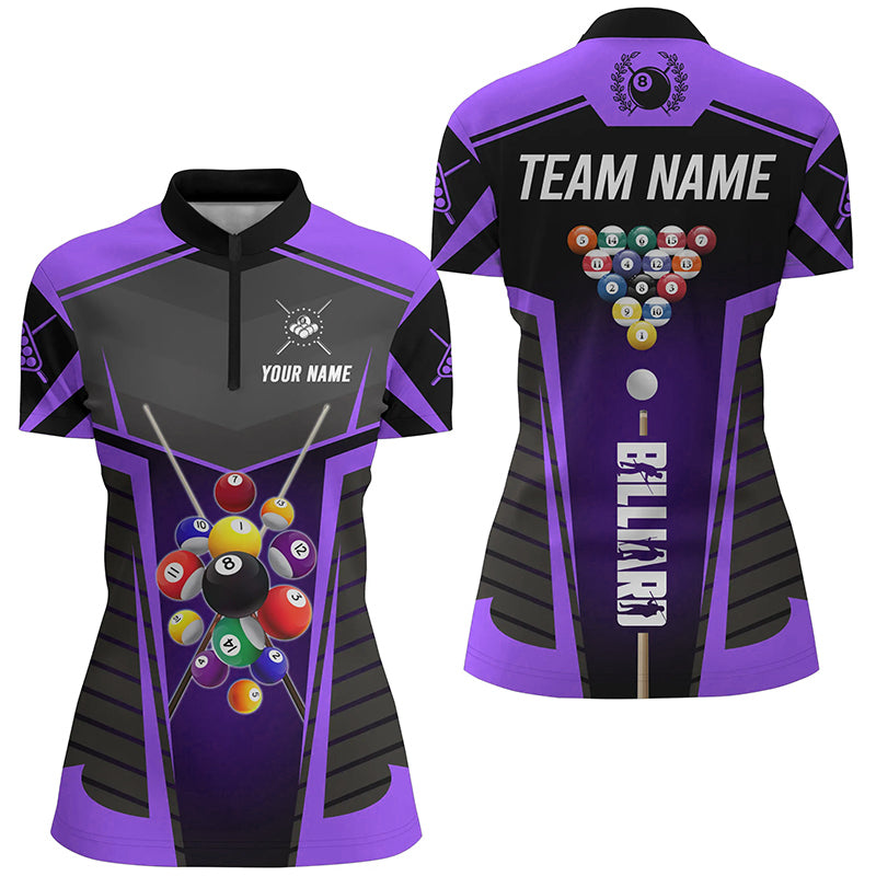 Personalized Purple Jerseys Billiard Balls Women Polo & 1/4 Zip Shirts Custom 3D Pool League Shirts TDM1610