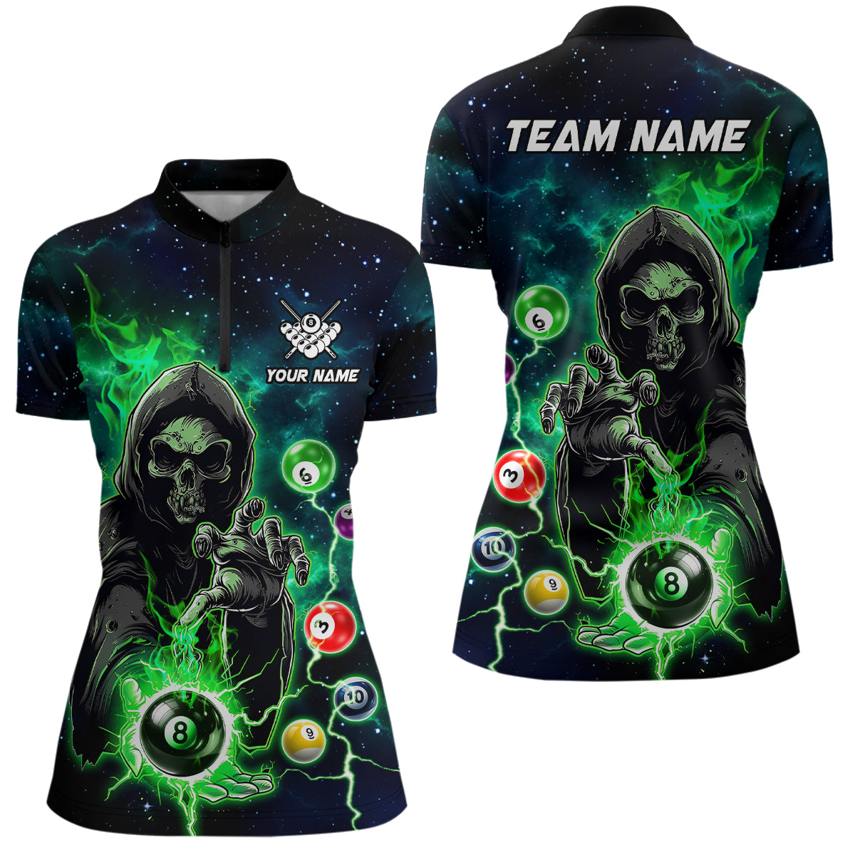Green Billiard Death Skeleton Women Polo & Quarter-Zip Shirts Customized Team League Billiard Jerseys TDM1752