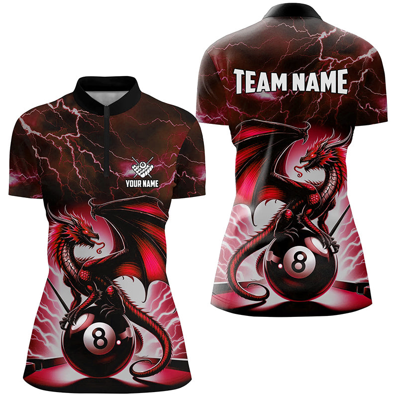 Lightning Thunder Dragon Custom Red 8 Ball Pool Shirts For Women, Billiard Team League Jerseys TDM1757