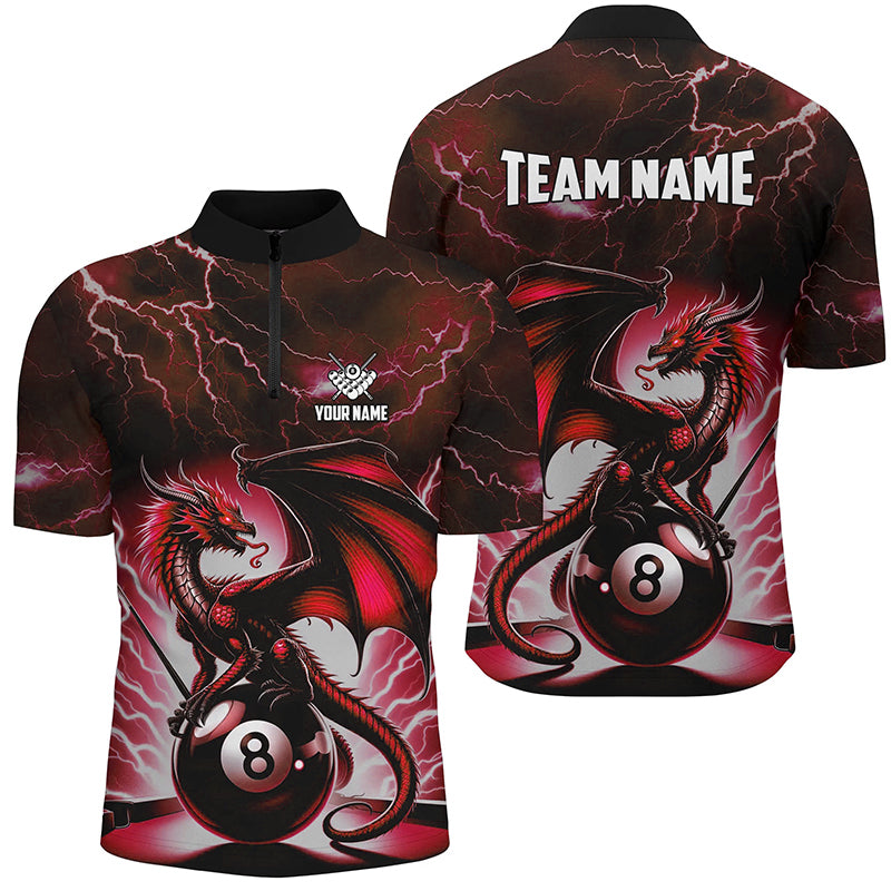 Lightning Thunder Dragon Custom Red 8 Ball Pool Shirts For Men, Billiard Team League Jerseys TDM1757