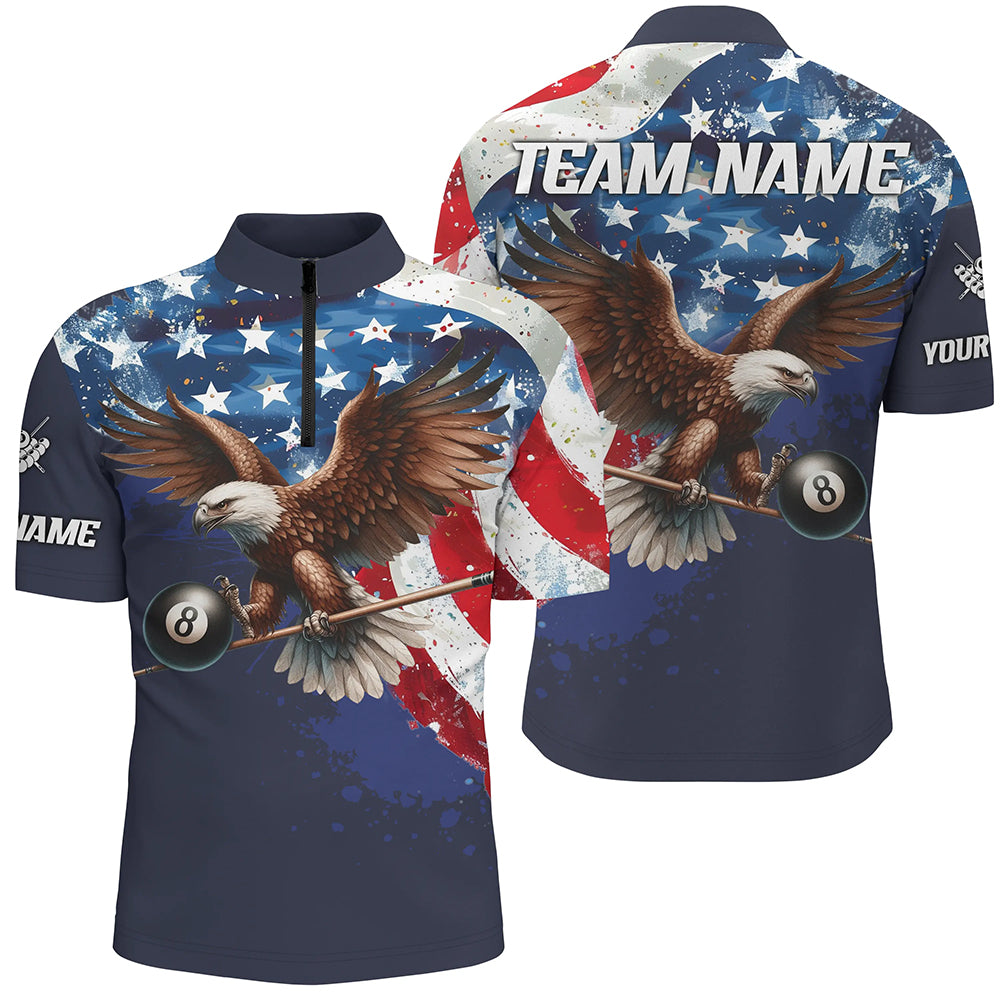 Eagle Flying 8 Ball Pool Custom Men Billiard Shirts US Flag 4Th Of July Patriotic Billiard Jersey TDM1785