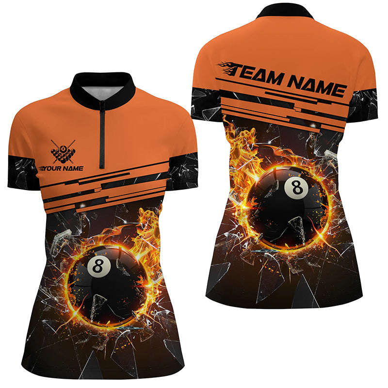 Orange Funny 8 Ball Pool Fire Break Glass Custom Women Billiard Shirt 3D Printed Billiard Team Jersey TDM1804