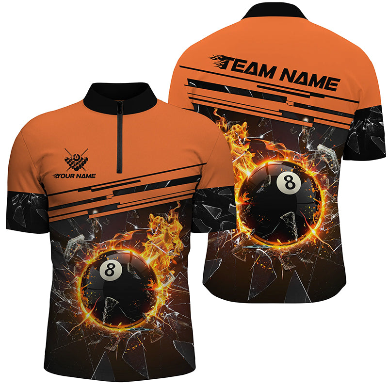 Orange Funny 8 Ball Pool Fire Break Glass Custom Men Billiard Shirt 3D Printed Billiard Team Jersey TDM1804