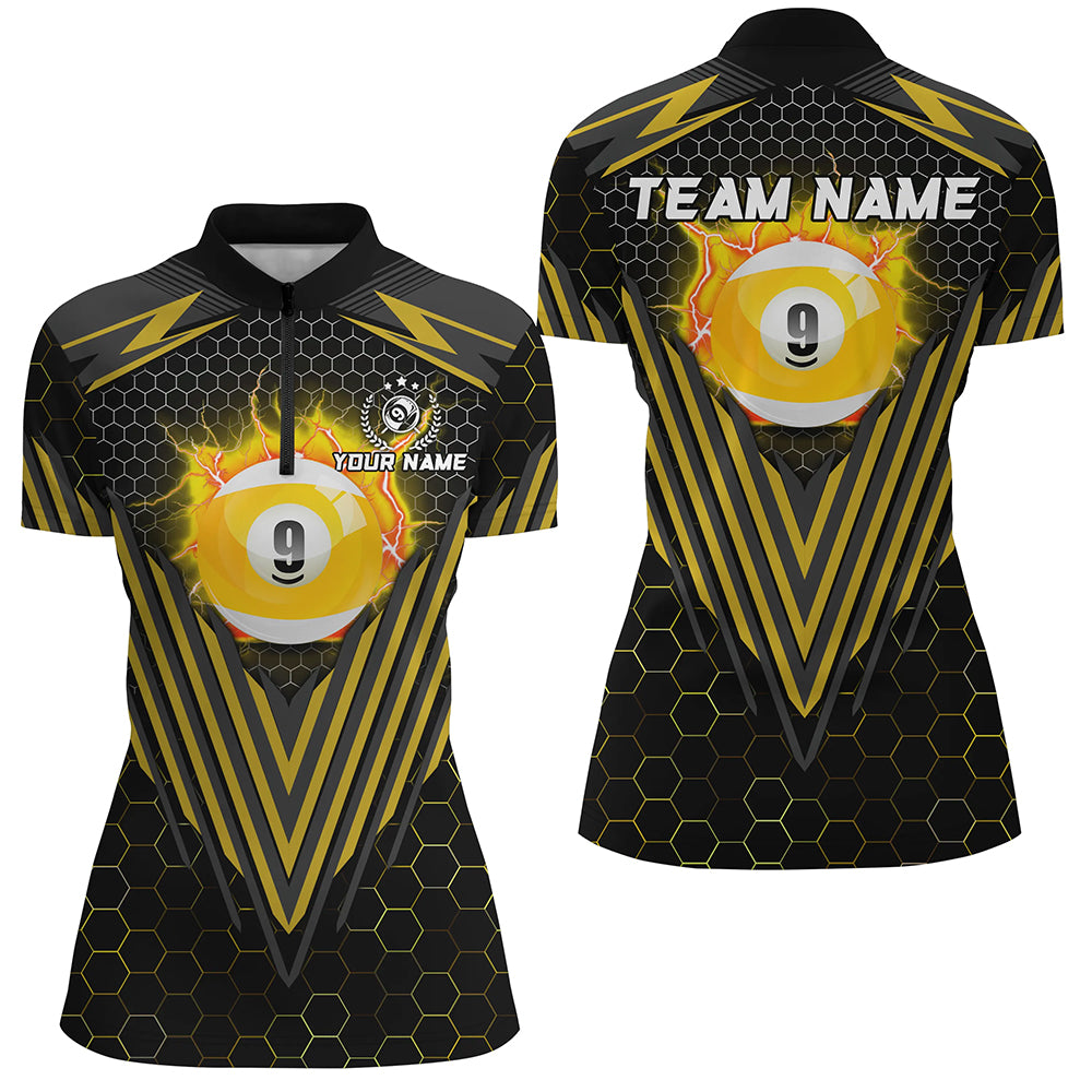 Yellow Billiard Ball 9 Polo & Quarter-Zip Shirts For Women Custom Team Name 9 Ball Pool Jerseys TDM1810