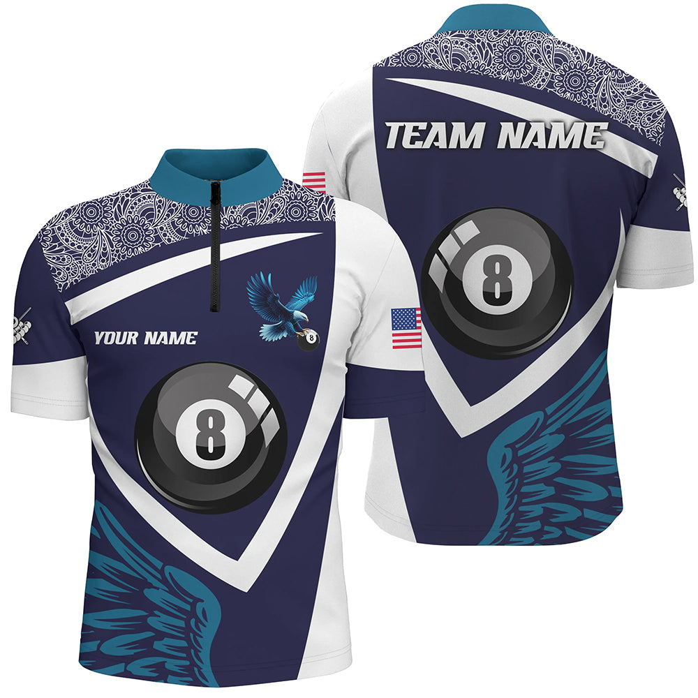 Personalized Blue 8 Ball Pool And Wings Custom Men Billiard Shirts, Billiard Pool Team Shirts TDM1849