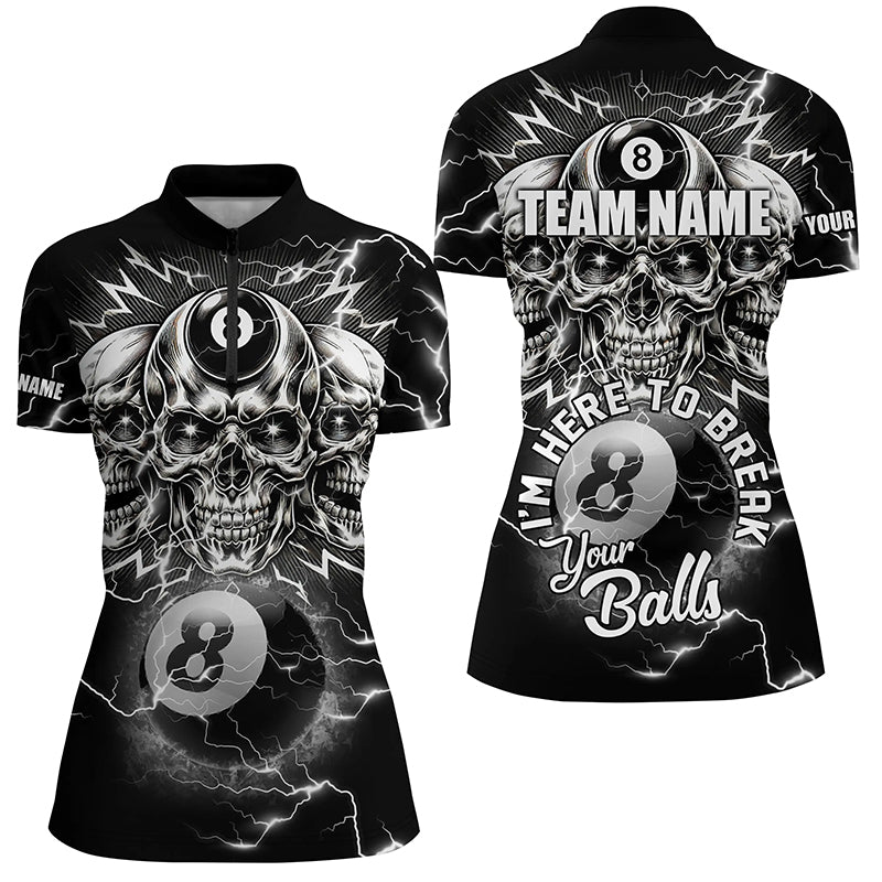 I'm Here To Break Your Balls Custom Billiard Shirts For Women, Funny Skull 8 Ball Billiard Jerseys TDM1858
