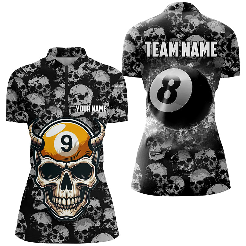 Personalized Billiard Jerseys 8 Ball & 9 Ball Custom Funny Skull Pattern Billiard Shirts For Women TDM1871