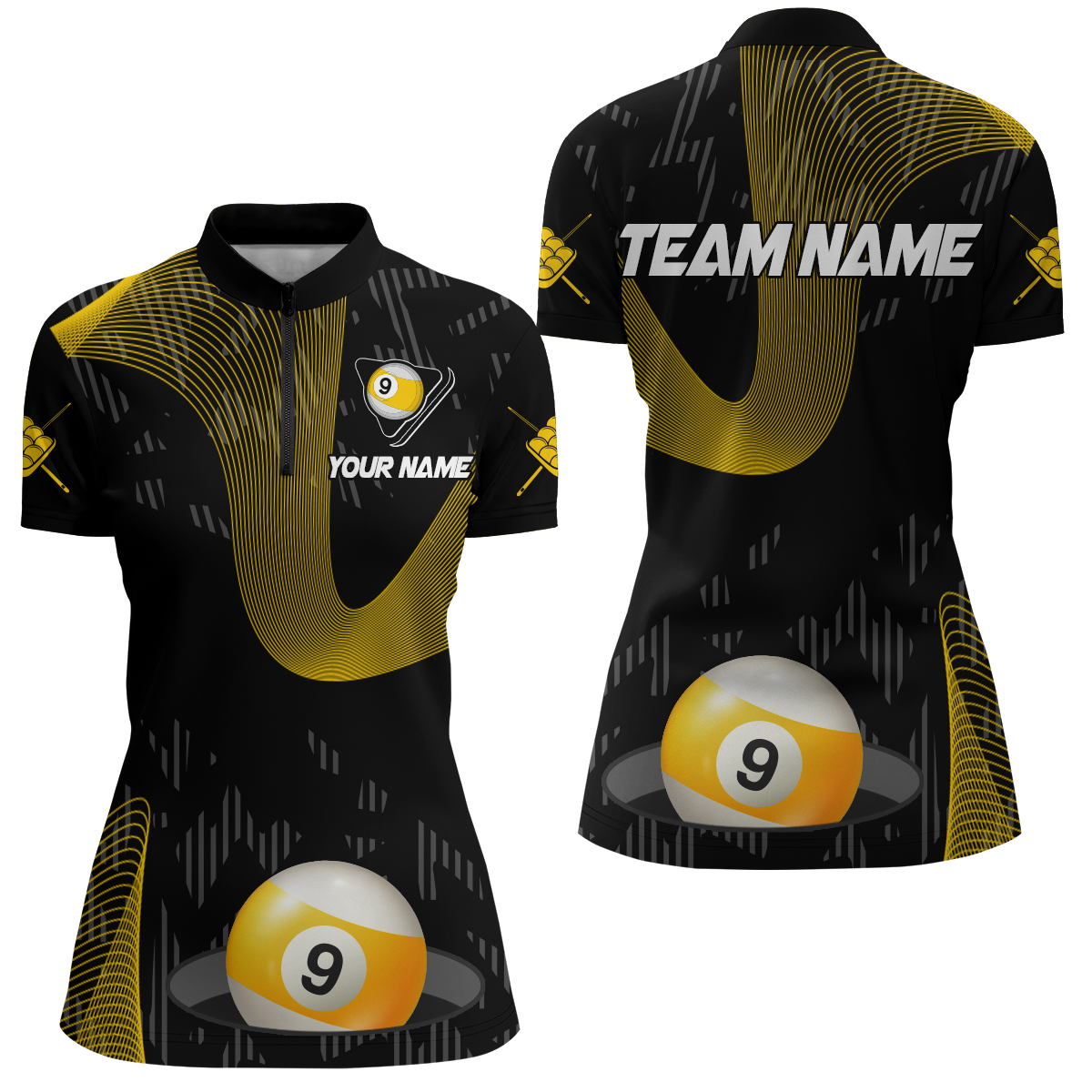 Customized Yellow Black 9 Ball Pool 3D Printed Billiard Shirts For Women, 9 Ball Billiard Jerseys TDM1938