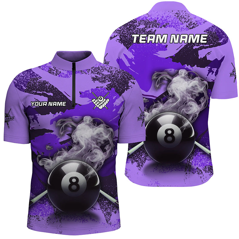 Personalized 8 Ball Pool Smoke Custom Purple Camo Men Billiard Shirts, Billiard Snooker Outfits TDM1968