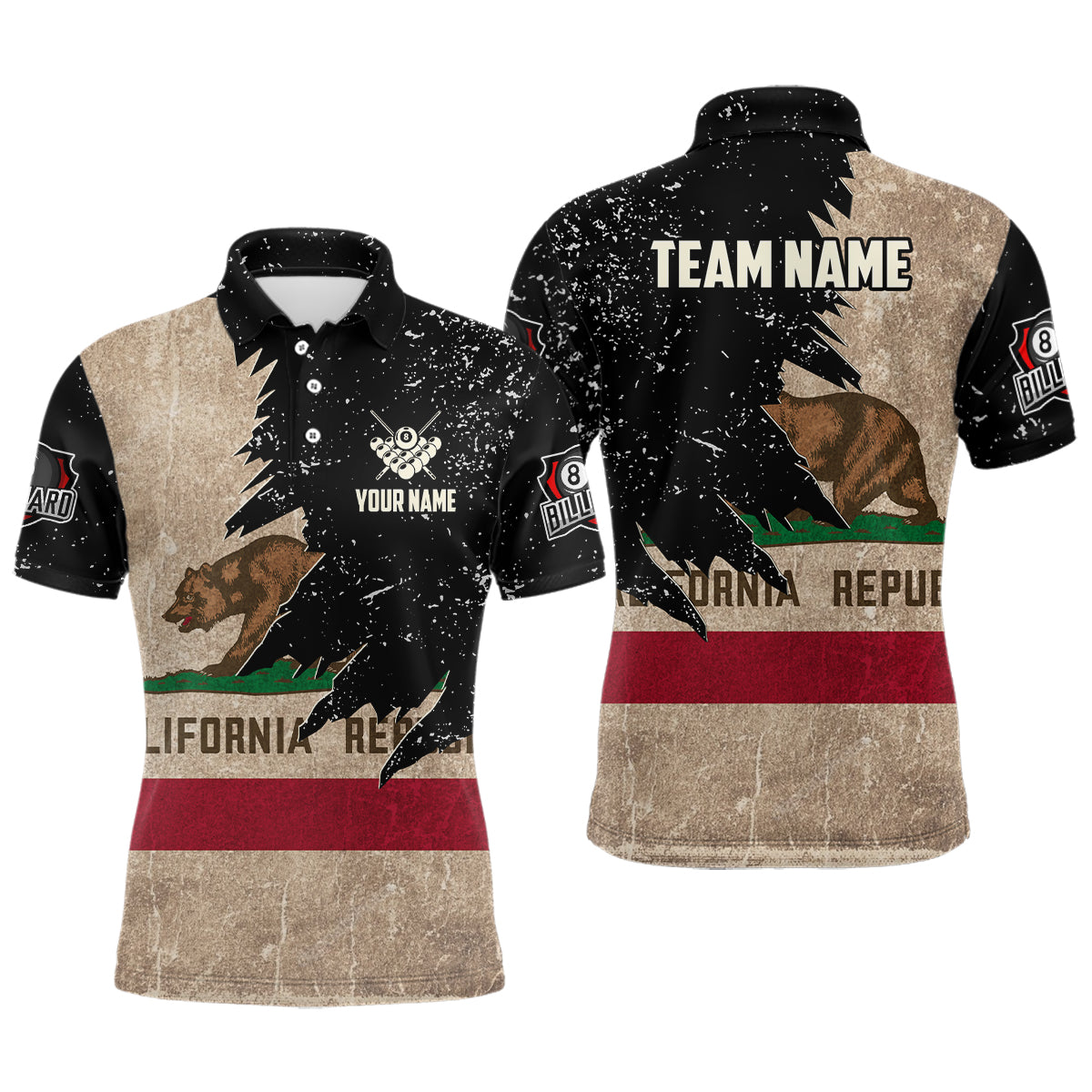 Personalized Retro California Flag Men Billiard Pool Shirt Custom Patriotic Billiard Jersey Uniform TDM2065