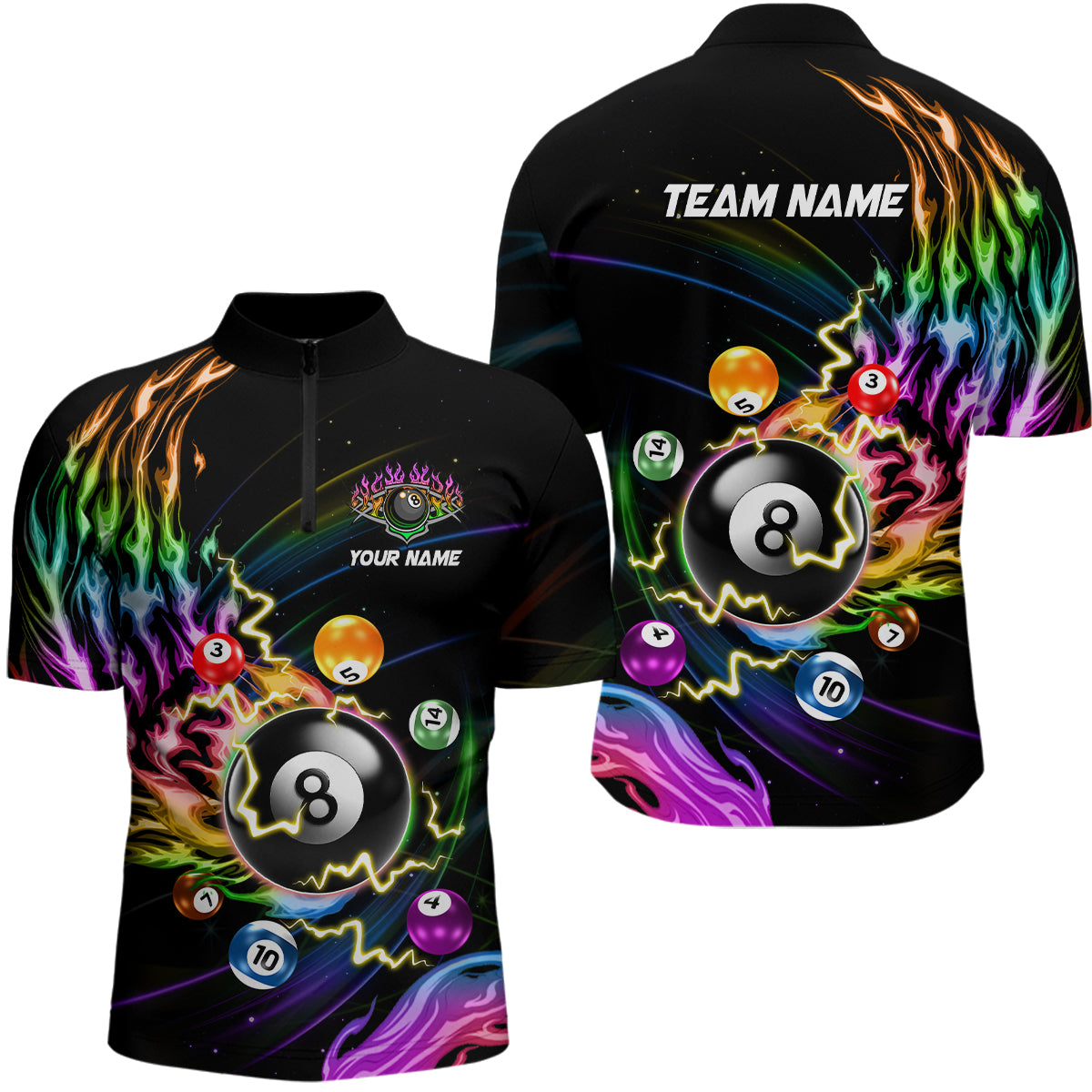 Personalized 3D Billiard Balls Colorful Fire Pool Shirts For Men Custom Lightning Billiard Jerseys TDM2088