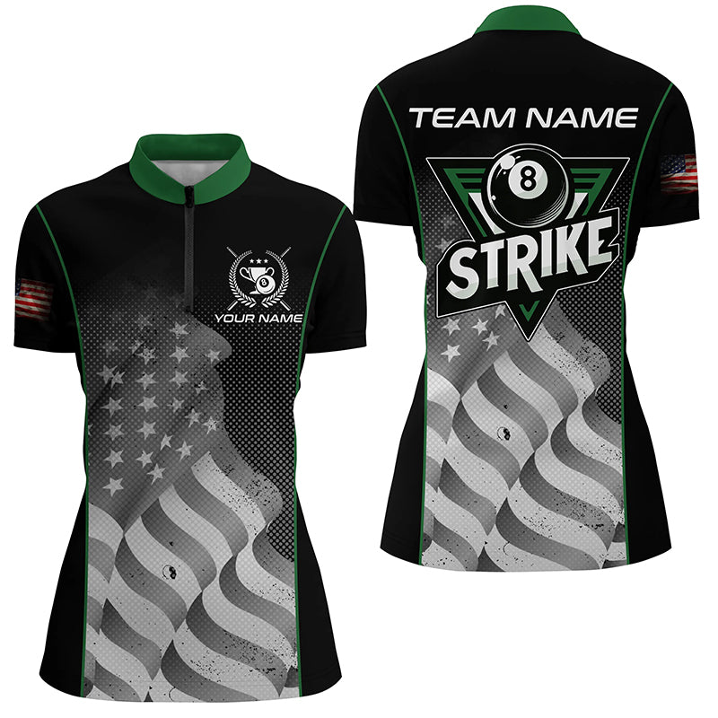 Retro American Flag Strike 8 Ball Billiard Shirts For Women Custom Patriotic Billiard Jerseys |Green TDM2115