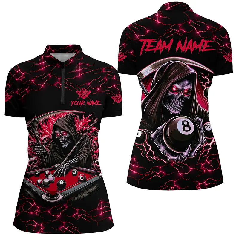Red Funny Death Skeleton 8 Ball Pool Women Billiard Shirts Custom Name Lightning Billiard Jerseys TDM2159