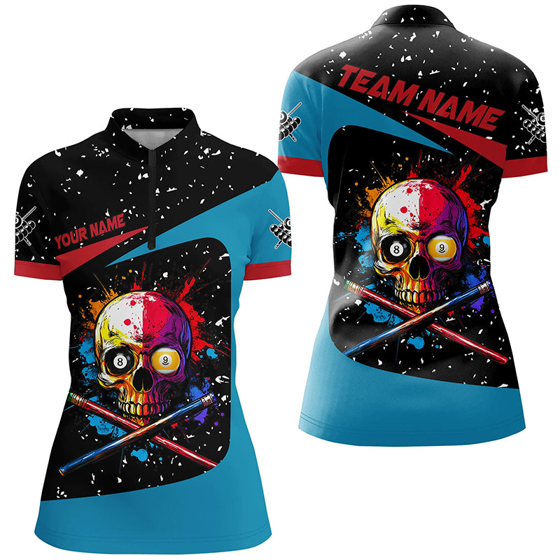 Personalized Colorful Skull 8 Ball 9 Ball Billiard Shirts For Women Custom Grunge Billiard Jerseys TDM2164