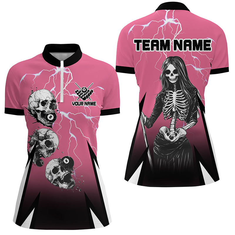 Death Skeleton Play Pool Custom Lightning Pink Billiard Shirts For Women, Funny Billiard Shirt Gifts TDM2175