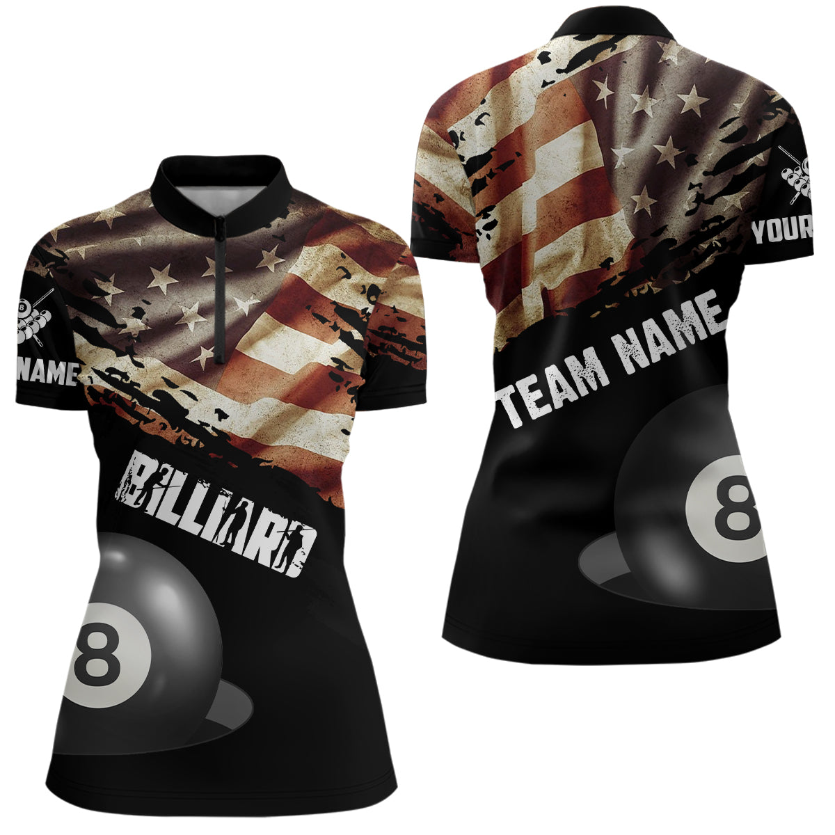 ✔️ Custom Unisex Billiard Shirts Our uniquely designed billiard polo and quarter-zip shirts are ideal for avid poolers who want to make a bold statement. With a stylish form and distinctive design, these shirts set you apart, highlighting your passion and confidence in billiards. Whether you are a professional player or play billiards for fun, we are ready to create great shirts for you and your team. Add your personal touch to create a one-of-a-kind shirt that carries your unique imprint.
