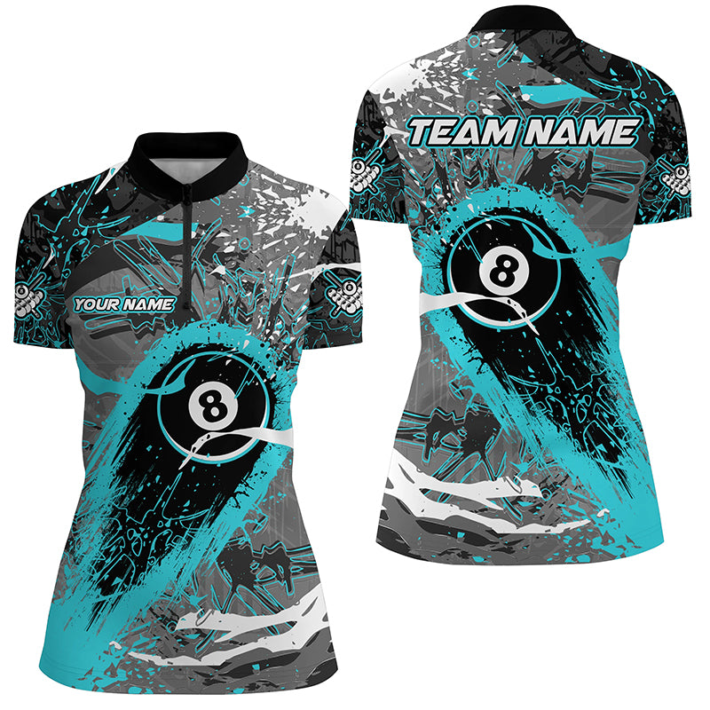 Turquoise Grunge Stains 8 Ball Pool Custom Billiard Shirts For Women, Unique Billiard Jerseys Apparel TDM2218