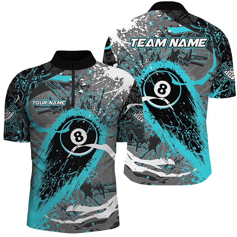 Turquoise Grunge Stains 8 Ball Pool Custom Billiard Shirts For Men, Unique Billiard Jerseys Apparel TDM2218
