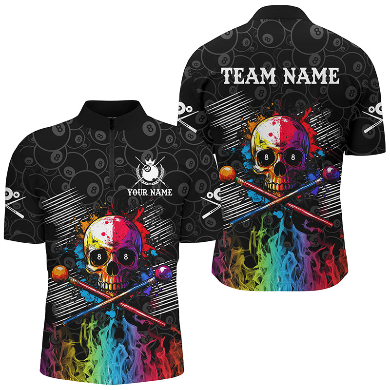 Personalized Colorful Skull Fire Billiard Shirts For Men Custom 8 Ball Pattern Billiard Jerseys TDM2228