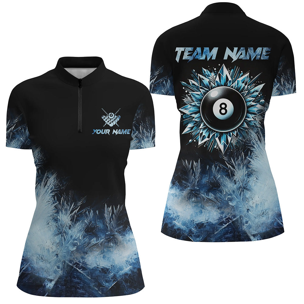 Personalized Blue Icy 8 Ball Pool Custom Billiard Shirts For Women, Billiard 8 Ball Jerseys Apparel TDM2232