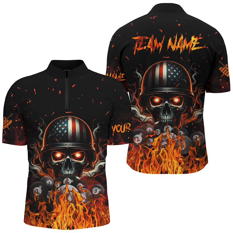 Funny Skull US Flag Billiard Shirts For Men Customized Billiard Balls Fire Sports Pool Jerseys TDM2239