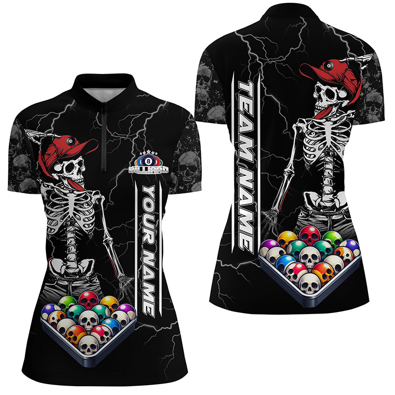 Personalized Funny Skull Billiard Balls Pool Shirts For Women Custom Skeleton Billiard Shirts Gifts TDM2244