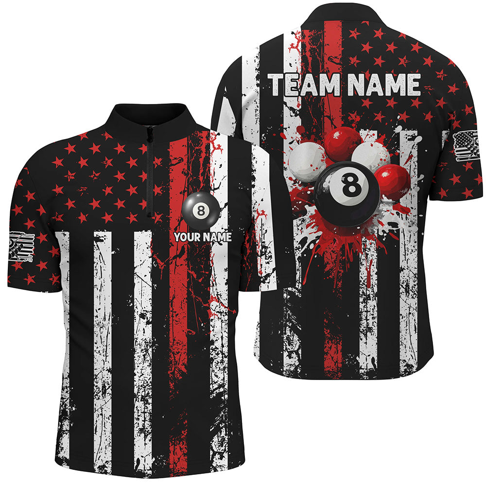 Red Grunge US Flag Patriotic Billiard Shirts For Men Custom Splash Paint 8 Ball Billiard Jerseys TDM2246