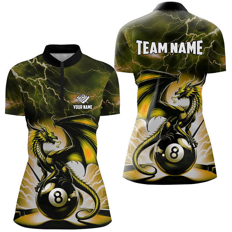 Lightning Thunder Dragon Custom Yellow 8 Ball Pool Shirts For Women, Billiard Team League Jerseys TDM2251