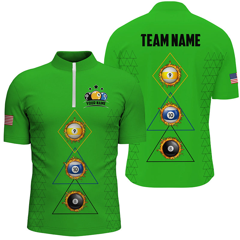 Customized Billiard 8 Ball 9 & Ball 10 Ball Shirts For Men, Unique Team Jersey Green Billiard Shirt TDM2255