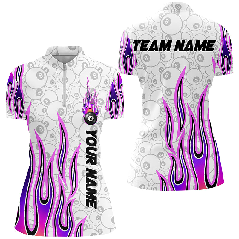 Fire Flame Purple 8 Ball Pattern Custom Billiard Shirts For Women, Best 8 Ball Pool Jerseys Apparel TDM2287