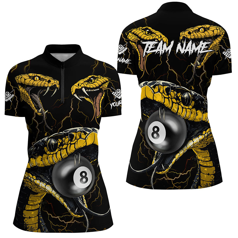 Yellow Black Funny Snakes 8 Ball Pool Custom Women Billiard Shirts, Unique Billiard Jerseys Apparel TDM2321