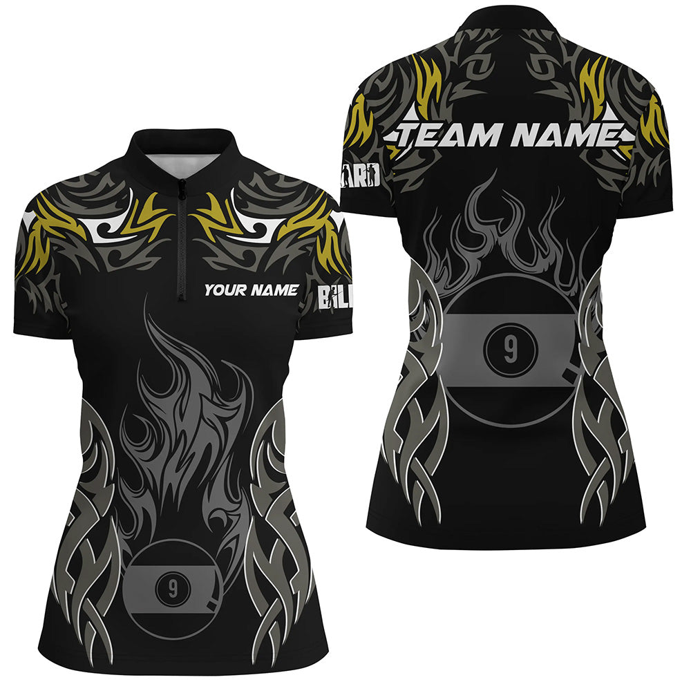 Customized Billiard Tournament Jersey For Women, 9 Ball Fire Flame Billiard Team Shirts | Yellow TDM2338