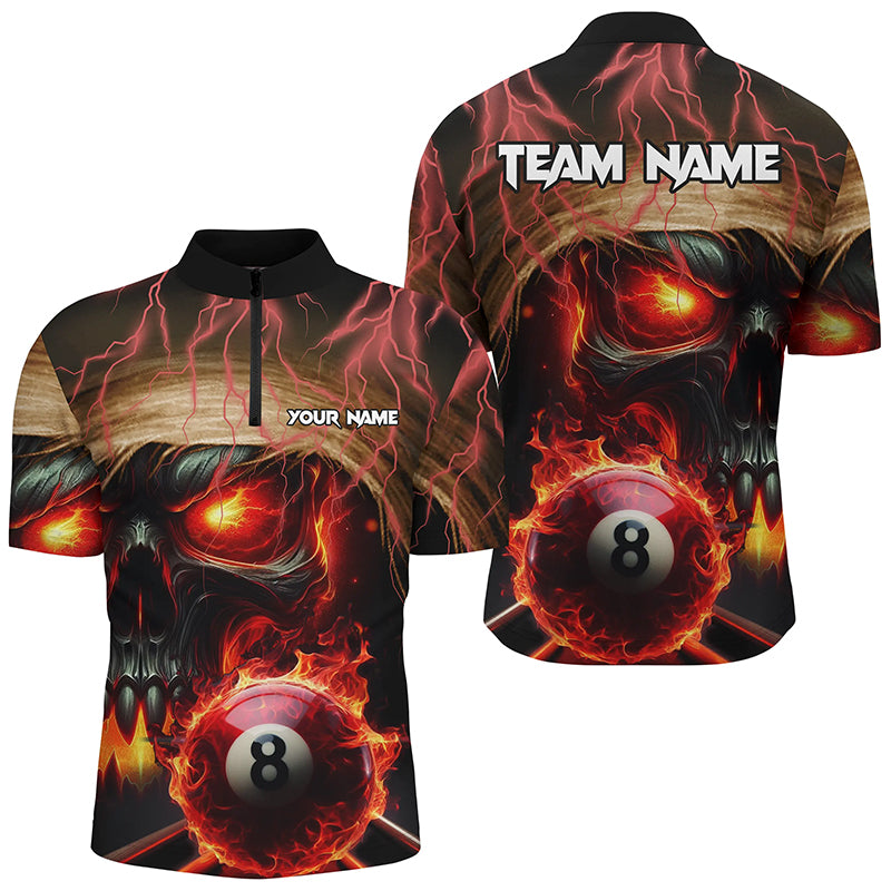 Skull Burning 8 Ball Pool Fire Custom 3D Printed Billiard Shirts For Men, Flame Billiard Jerseys TDM2339