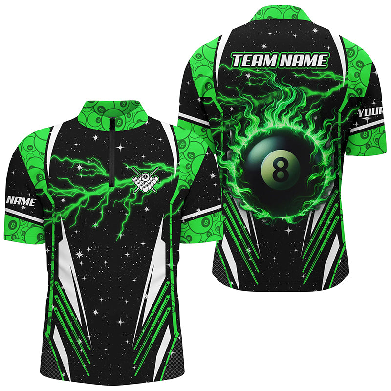 Galaxy Lightning Green 8 Ball Pool Fire Custom Billiard Shirts For Men, Billiard Team Jerseys TDM2341