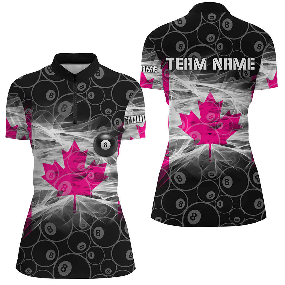 Pink Canadian Flag Smoke Custom 8 Ball Billiard Shirt For Women, Breast Cancer Canada Billiard Jersey TDM2361