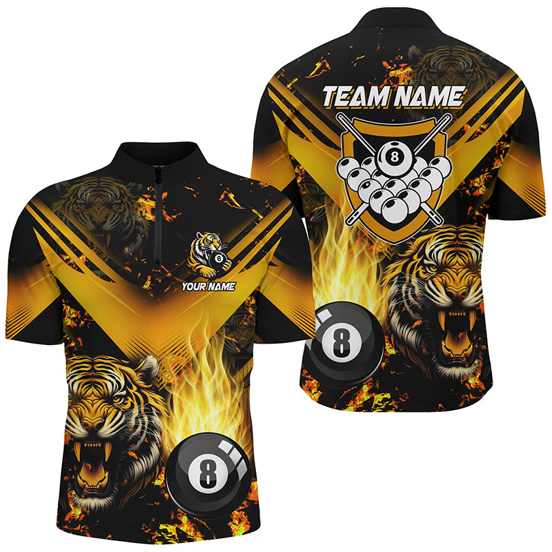 Tiger 3D All Over Print Billiard Shirts For Men Custom 8 Ball Team League Billiard Jerseys |Yellow TDM2373