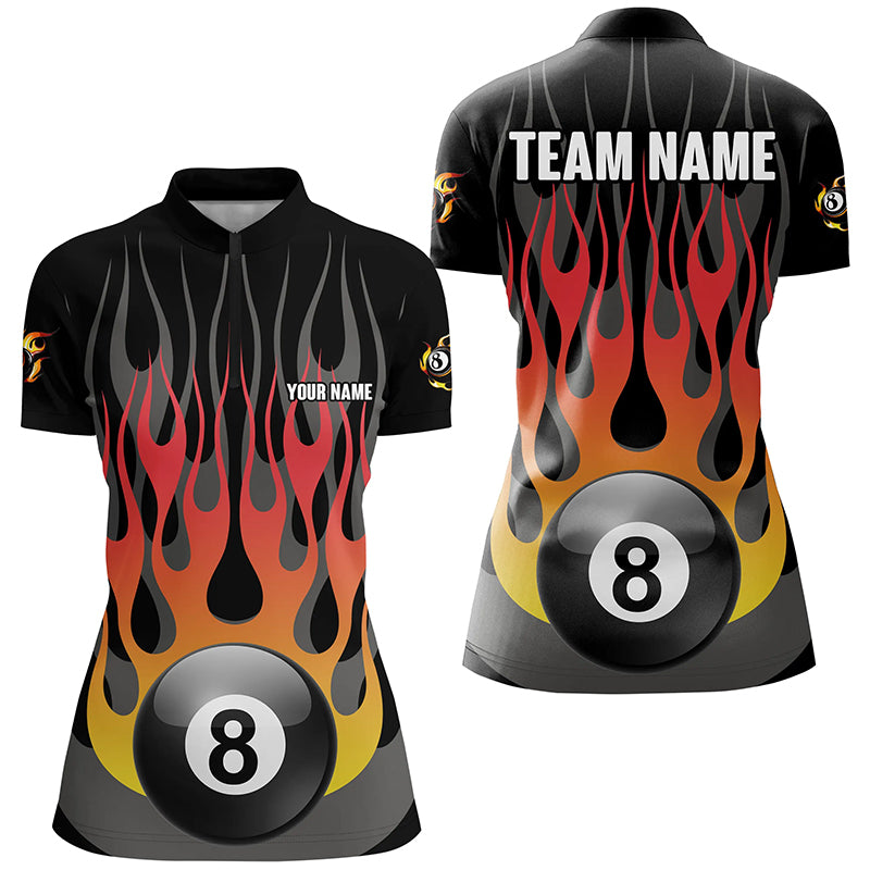 Personalized Funny Fire 8 Ball Pool Billiard Shirts For Women Custom Fire Flame Billiard Jerseys TDM2415