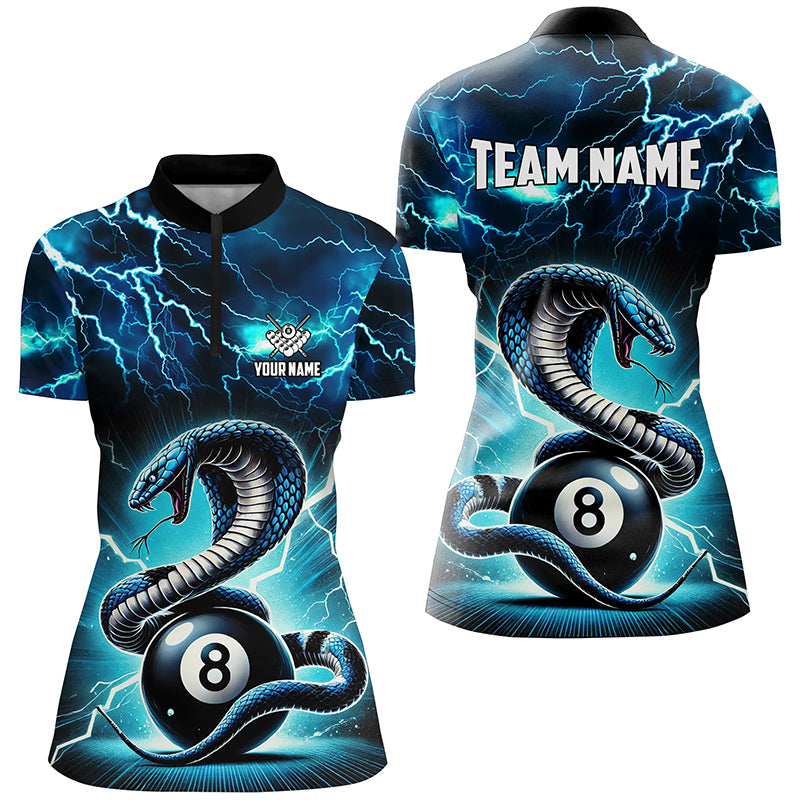 Lightning Thunder Snakes Custom Blue 8 Ball Pool Shirts For Women, Billiard Team League Jerseys TDM2418