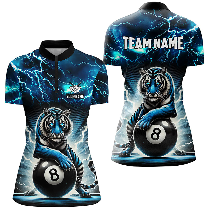 Lightning Thunder Tiger Custom Blue 8 Ball Pool Shirts For Women, Billiard Team League Jerseys TDM2419