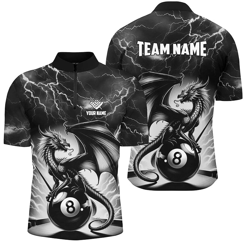 Lightning Thunder Dragon Custom Black 8 Ball Pool Shirts For Men, Billiard Team League Jerseys TDM2431