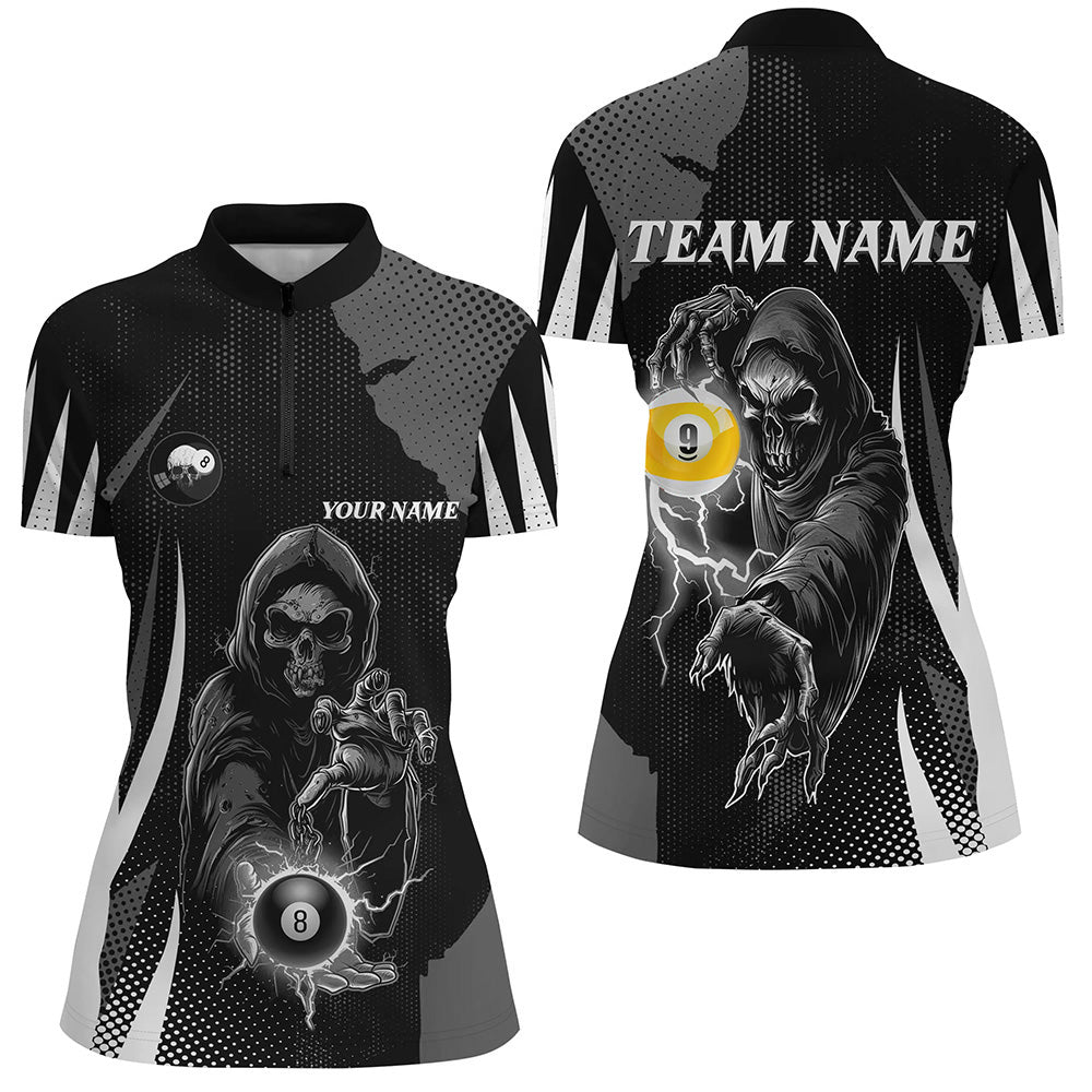 Funny Black Death Skeleton 8 Ball & 9 Ball Billiard Shirts For Women Custom League Billiard Jerseys TDM2464