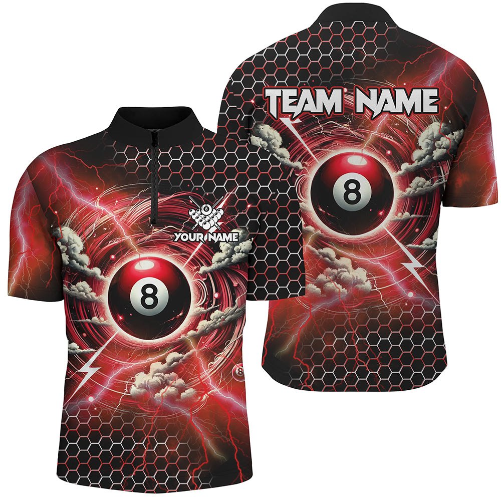 Funny Storm Thunder 8 Ball Pool Custom Billiard Shirts For Men, 8 Ball Shirts Billiard Jersey | Red TDM2524