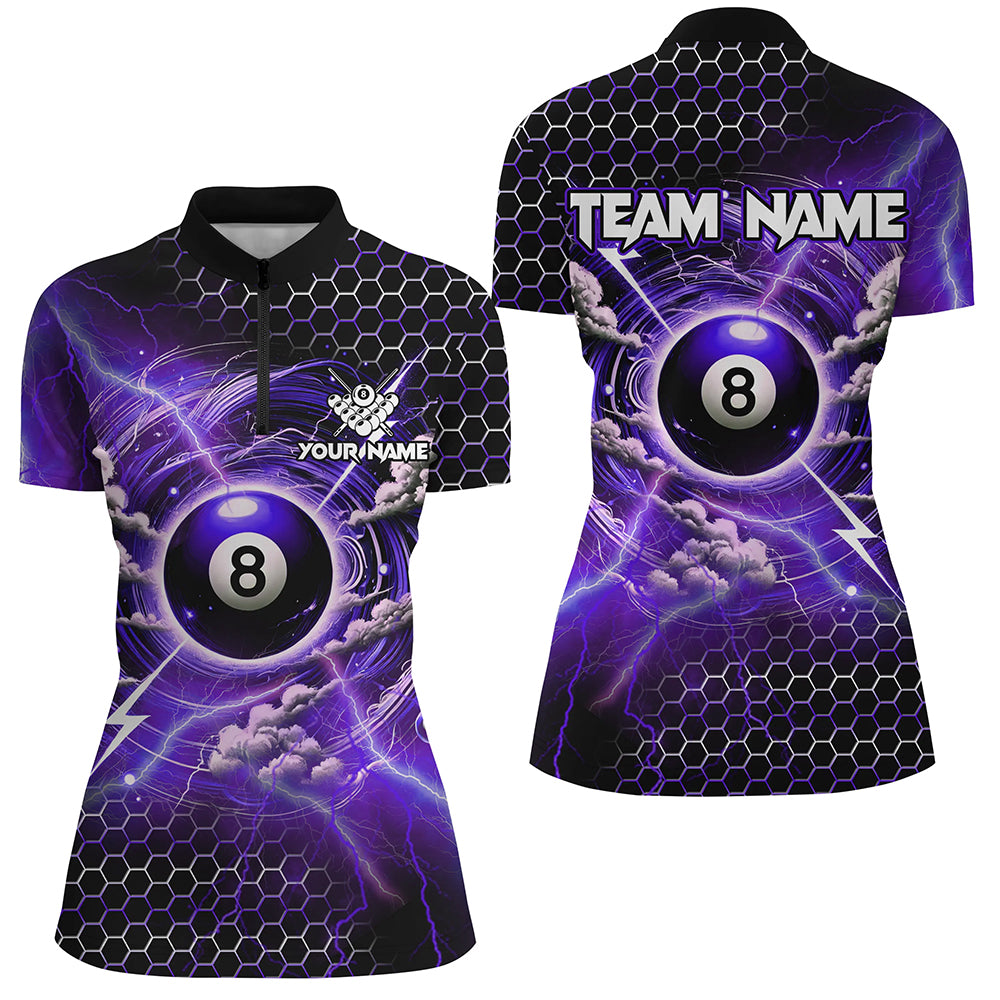 Funny Storm Thunder 8 Ball Pool Custom Billiard Shirts For Women 8 Ball Shirt Billiard Jersey |Purple TDM2526