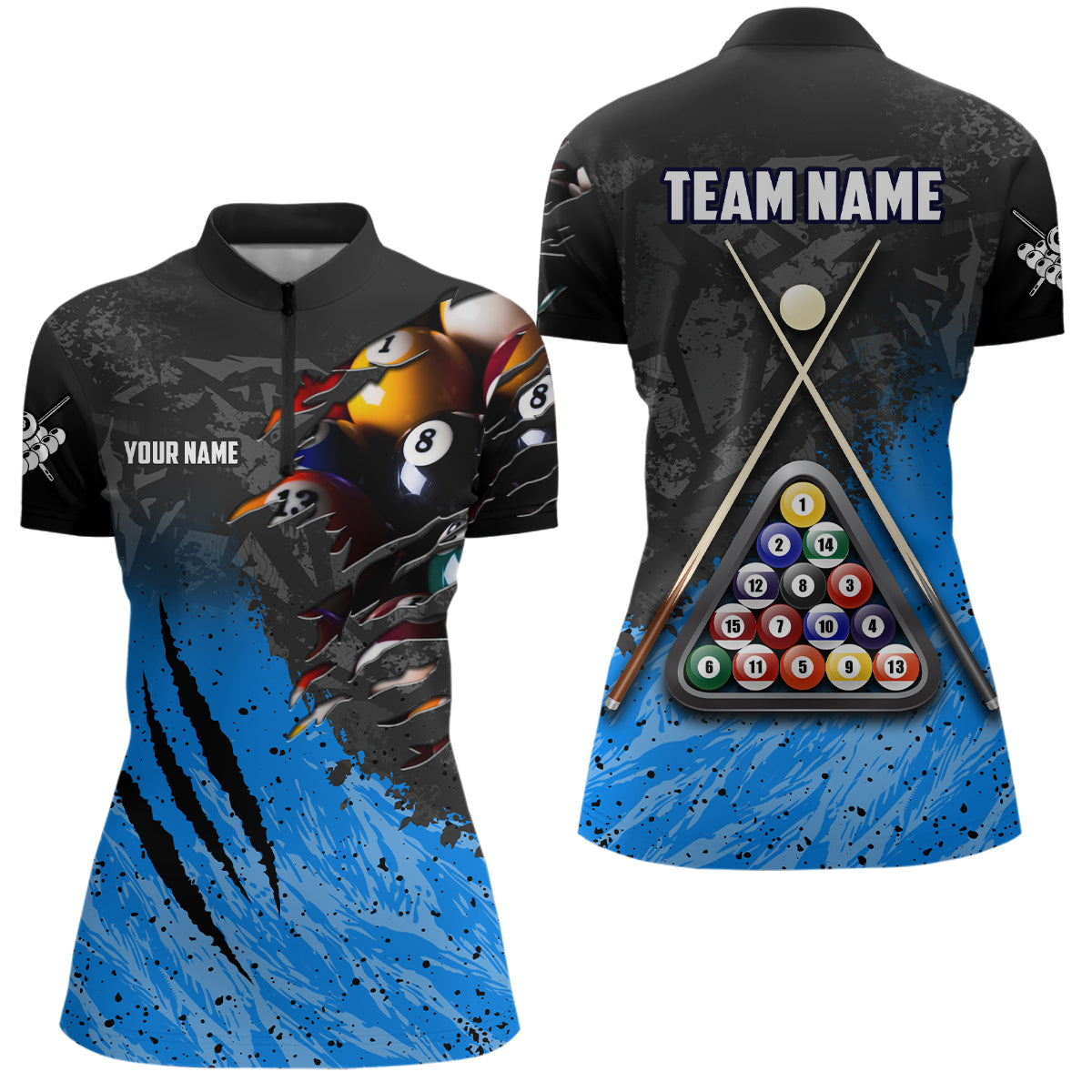 Personalized Blue Black 8 Ball Billiards 3D Shirts For Women Custom Pool Billiards Team Jerseys VHM1186