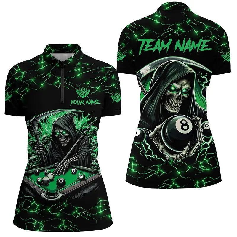 Green Funny Death Skeleton 8 Ball Pool Women Billiard Shirts Custom Name Lightning Billiard Jerseys TDM2827